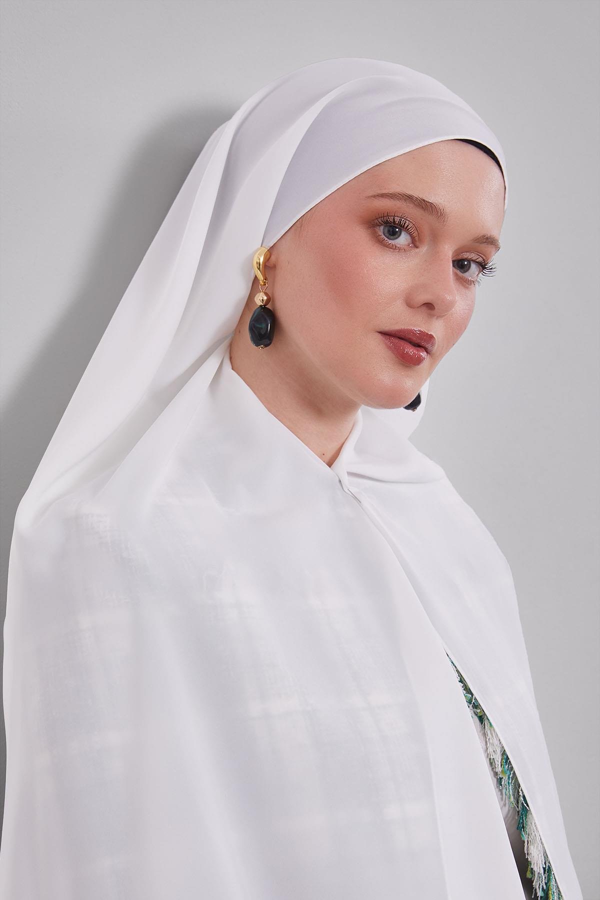 Fivescarf Kırık Beyaz Taşlı Lüx Medine İpeği Şal (FIV.MIS.0027)